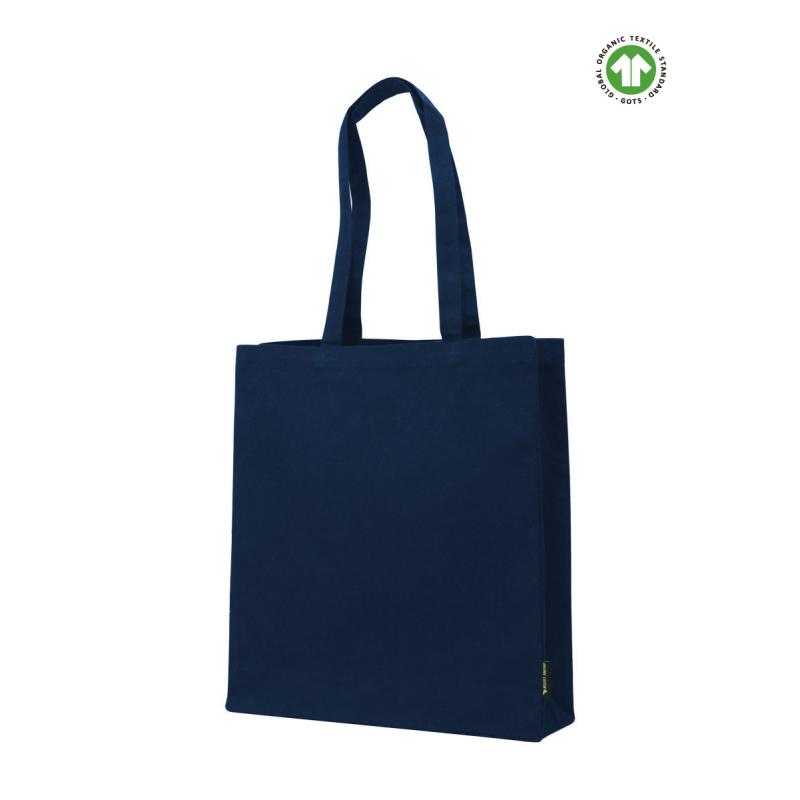 Dyed organic 10oz canvas bag with full gusset. GOTS (Global Organic Textile Standard) certified.