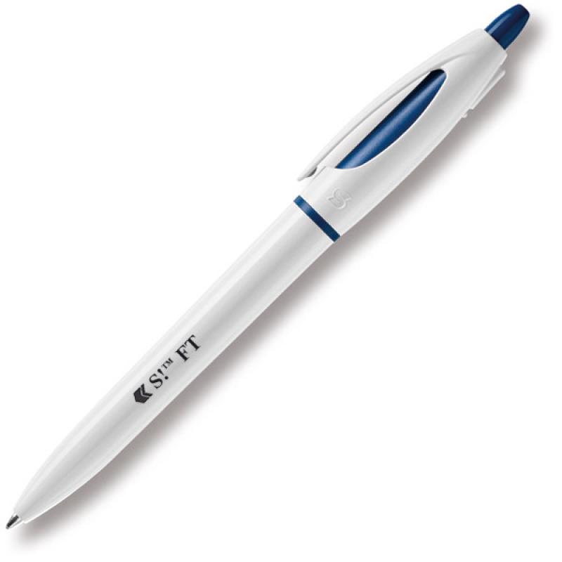 S! Ft Plastic Ball Pen Retractable Solid Finish With White Barrel & Coloured Fittings Ideal For Multi Colour Print Black Ink Refill