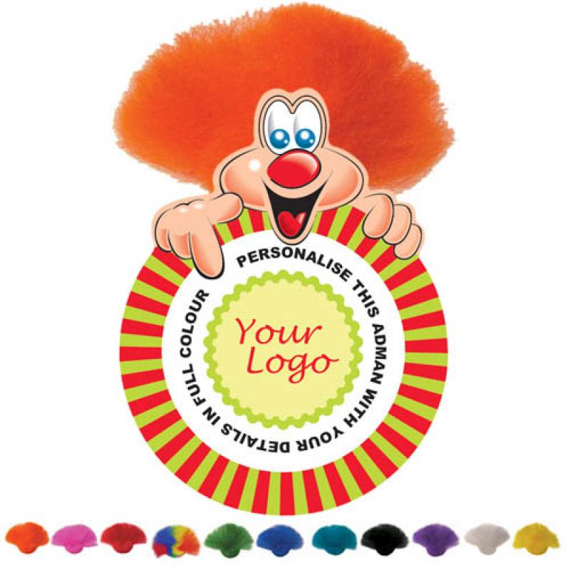 Card Adman character holding a round disc with plenty of space for your marketing message printed in full colour Not laminated